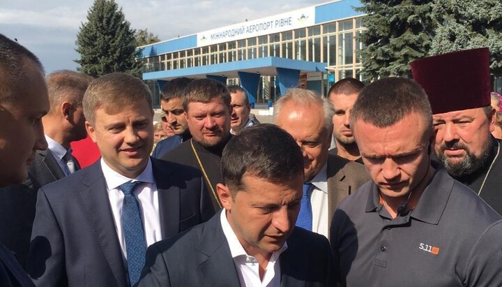 Сьогодні, 10 вересня 2019 року, Президент України Володимир Зеленський зустрівся з вірянами УПЦ в Рівному, куди він прибув із робочим візитом спеціально для представлення нового голови Рівненської ОДА. Зустріч відбулася на території Міжнародного аеропорту, повідомляє кореспондент СПЖ.