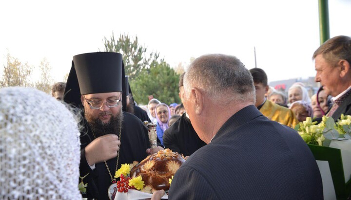 Владика Сильвестр після святкового богослужіння передав вірянам вітання Предстоятеля УПЦ Митрополита Київського і всієї України Онуфрія та нагородив кількома Почесними грамотами священнослужителів і мирян, які брали визначну участь у будівництві нового храму.