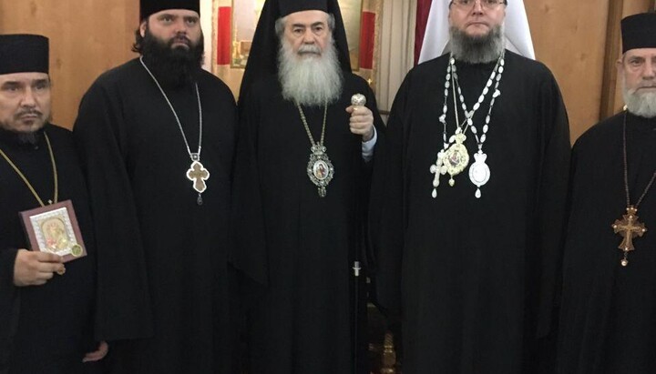 Вітаючи українську делегацію, Патріарх Феофіл підкреслив, що Єрусалимська Церква молиться про Українську державу і з любов'ю приймає всіх паломників Української Православної Церкви, очолюваної Блаженнішим Митрополитом Київським і всієї України Онуфрієм.