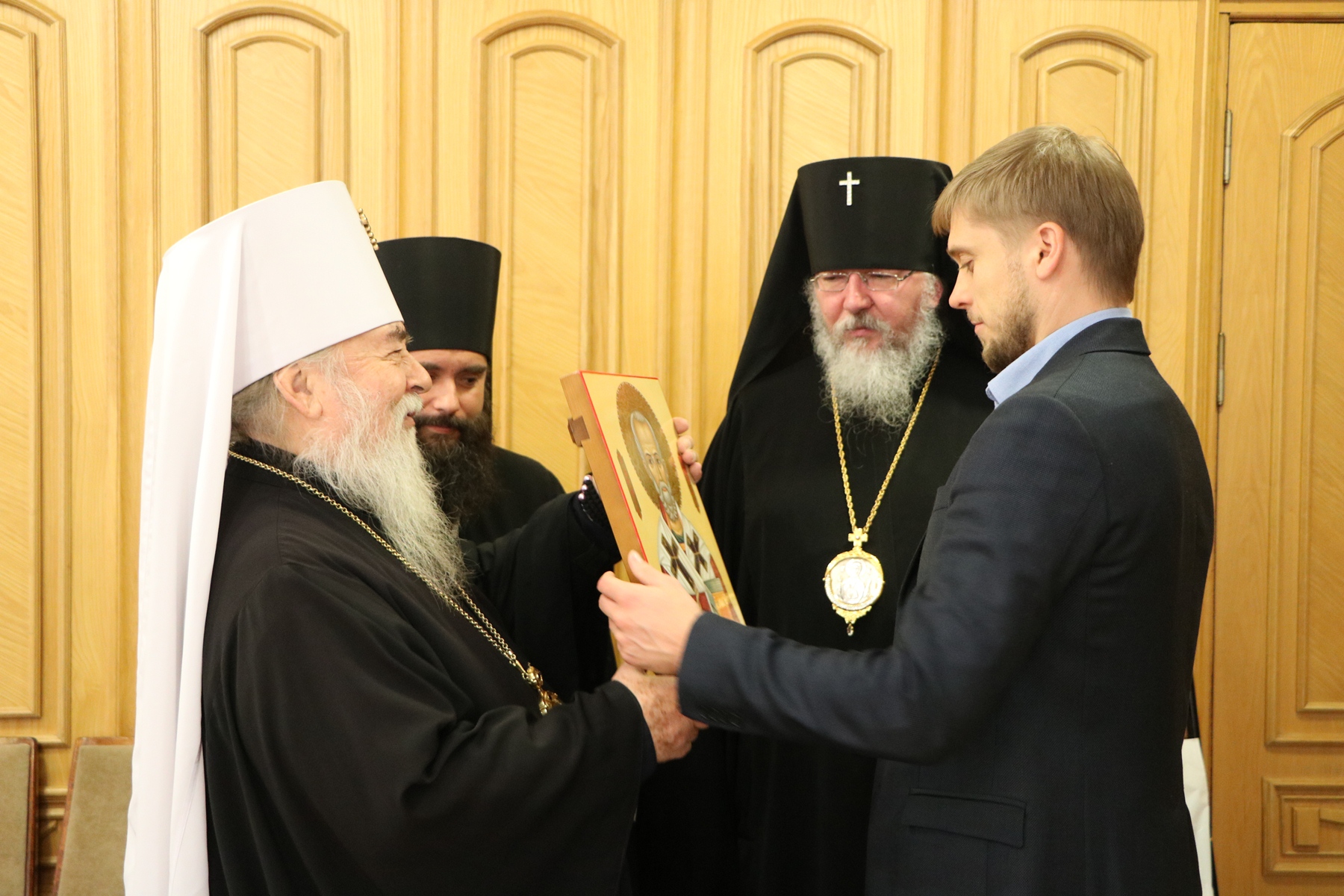 Зустріч, в якій також взяли участь вікарії єпархії архієпископ Новомосковський Євлогій, єпископ Петропавлівський Андрій і секретар єпархіального управління протоієрей Миколай Ничипорук, відбулася в робочому кабінеті голови ОДА.