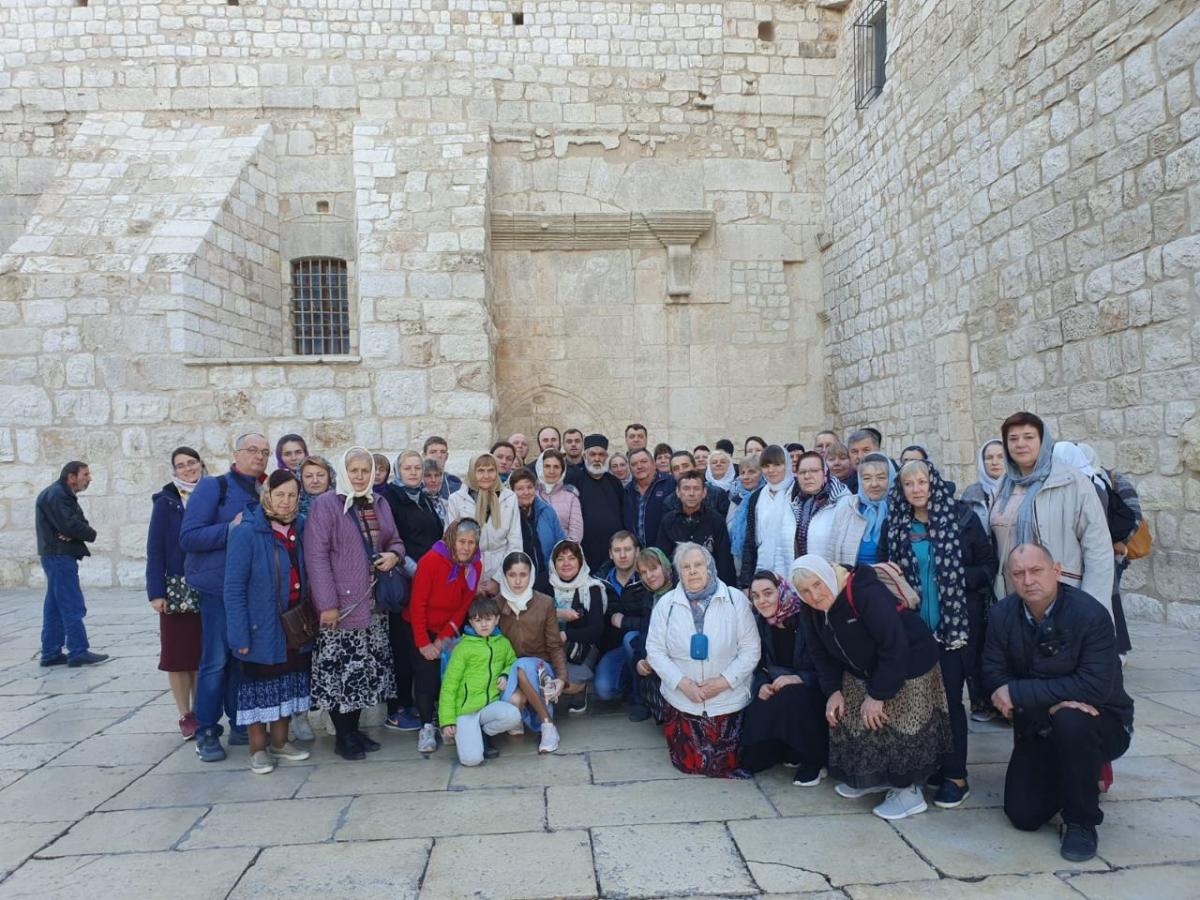 Миряни відвідали Храм Гробу Господнього, де помолилися за нічною літургією і причастилися, храми Благовіщення Богородиці та Різдва Христового, побували на святих джерелах. Також віряни відвідали печерний храм 40-денного посту Христа й Лавру Сави Освяченого, вклонилися мощам святих і пройшли тернистим шляхом Христа до Голгофи, поринули у води святого Йордана й піднялися на гору Вознесіння Іісуса Христа.