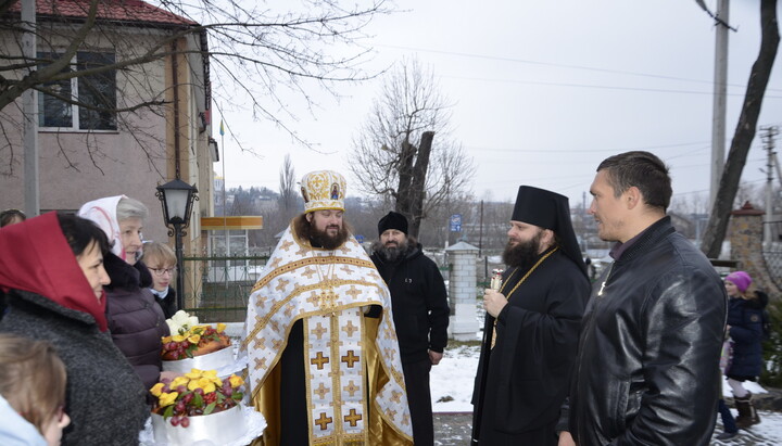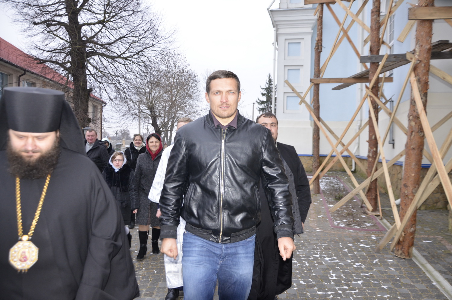 Іменитий боксер відвідав спортивний клуб «Легіон» і відвідав два монастирі краю, а також помолився під час вечірнього святкового богослужіння в Свято-Воскресенській церкві міста Острог.