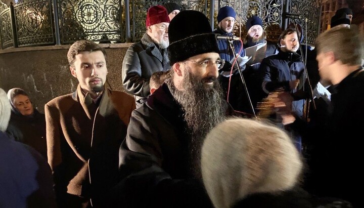 По завершенню молебню владика Варсонофій привітав присутніх зі святами, подякував за підтримку Вінницької єпархії УПЦ та за те, що в цей холодний зимовий вечір біля стін захопленого собору зібралося така велика кількість вірних канонічної Церкви.
