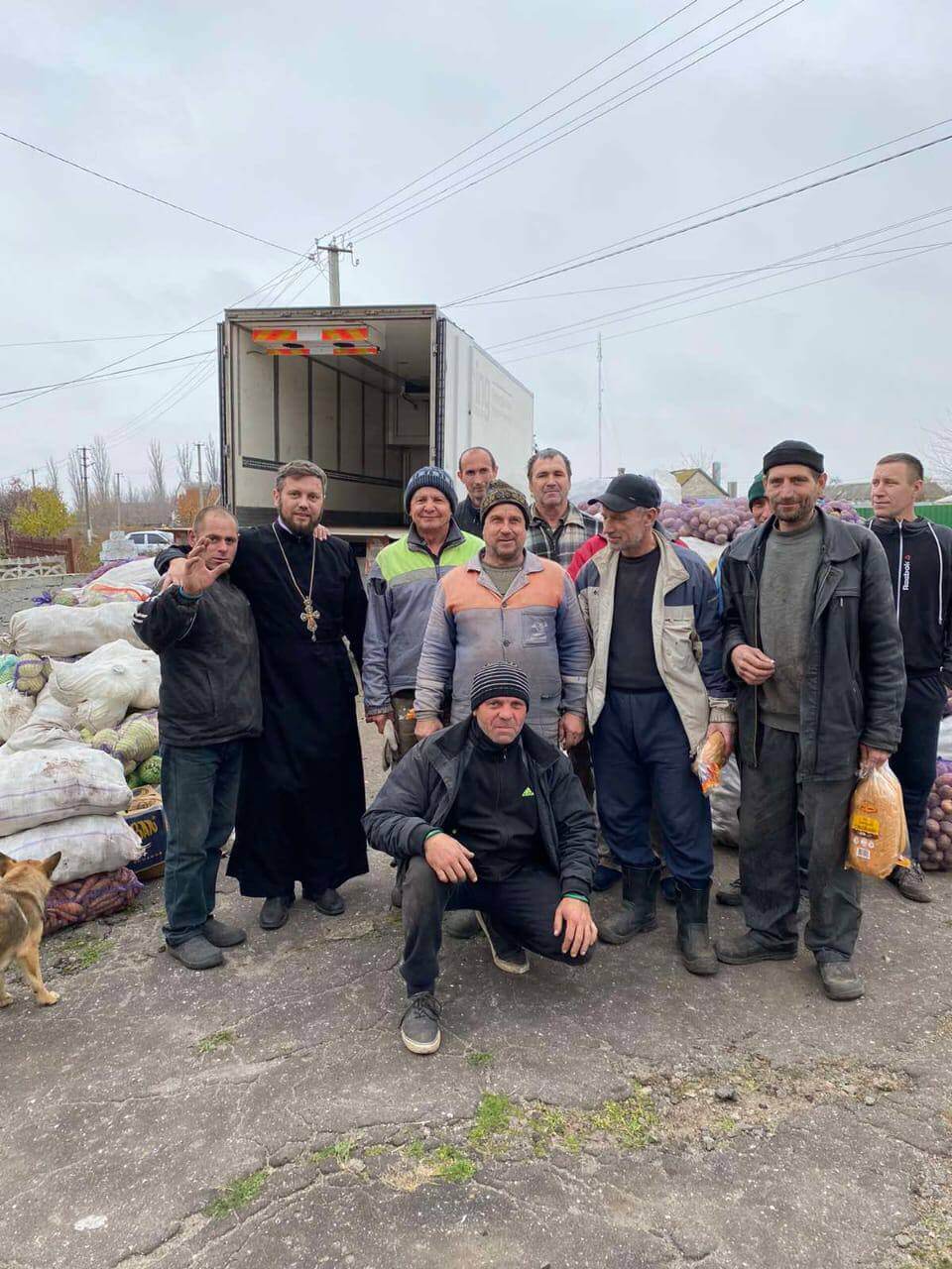 Голова соціального відділу при Рівненській єпархії протоієрей Петро Перетятко доставив гуманітарний вантаж до населених пунктів Миколаївської області – Котляревого, Українки, Луча та Благодатного. За словами отця Петра, овочі зібрали віряни Корецького благочиння.