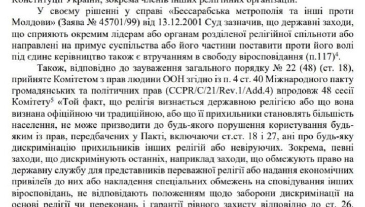 Юристи Ради додали, що заборона релігійних організацій, які в будь-якій формі «декларують» зв'язок із РПЦ, є невизначеною причиною (тобто не перераховано конкретних форм такого декларування, – Ред.), що дає привід закривати релігійні громади на розсуд влади.
