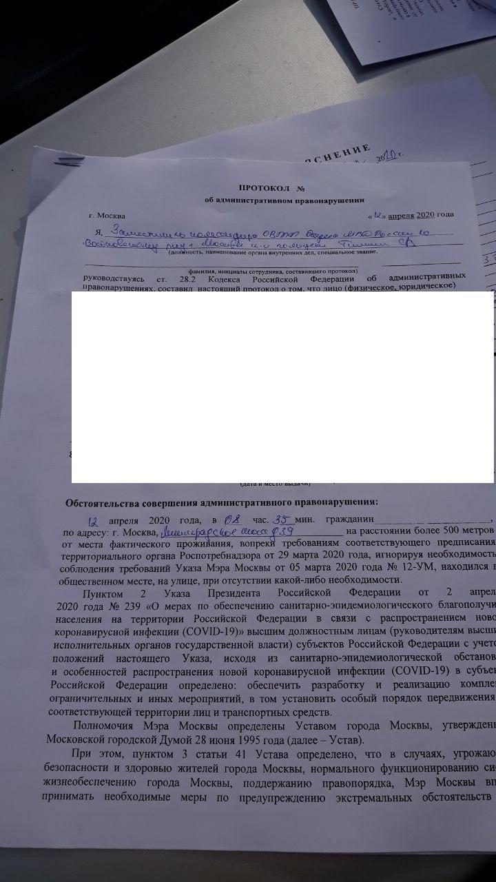 Протокол складено за статтею 3.18.1 московського КпАП, що передбачає штраф у розмірі 4000 рублів.