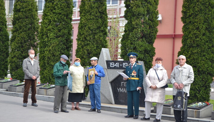 Ієрархи, духовенство і миряни УПЦ привітали ветеранів подарунками, помолилися за них і за загиблих захисників Вітчизни та поклали квіти до меморіалів на честь загиблих.