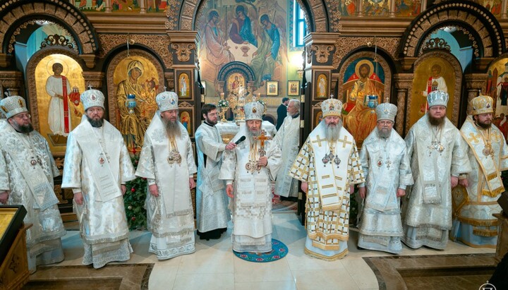 Предстоятелю УПЦ співслужили намісник Києво-Печерської лаври митрополит Вишгородський та Чорнобильський Павло, керуючий справами УПЦ митрополит Бориспільський та Броварський Антоній, митрополит Білоцерківський та Богуславський Августин, митрополит Житомирський та Новоград-Волинський Никодим, митрополит Черкаський і Канівський Феодосій, митрополит Ніжинський і Прилуцький Климент, архієпископ Баришівський Віктор, архієпископ Білогородський Сильвестр, єпископ Переяслав-Хмельницький Діонісій, єпископ Згурівський Амвросій, єпископ Вишневський Спиридон, єпископ Ірпінський Лавр, єпископ Бородянський Марк, єпископ Корсунь-Шевченківський Антоній, гості у священному сані, духовенство собору та єпархії.