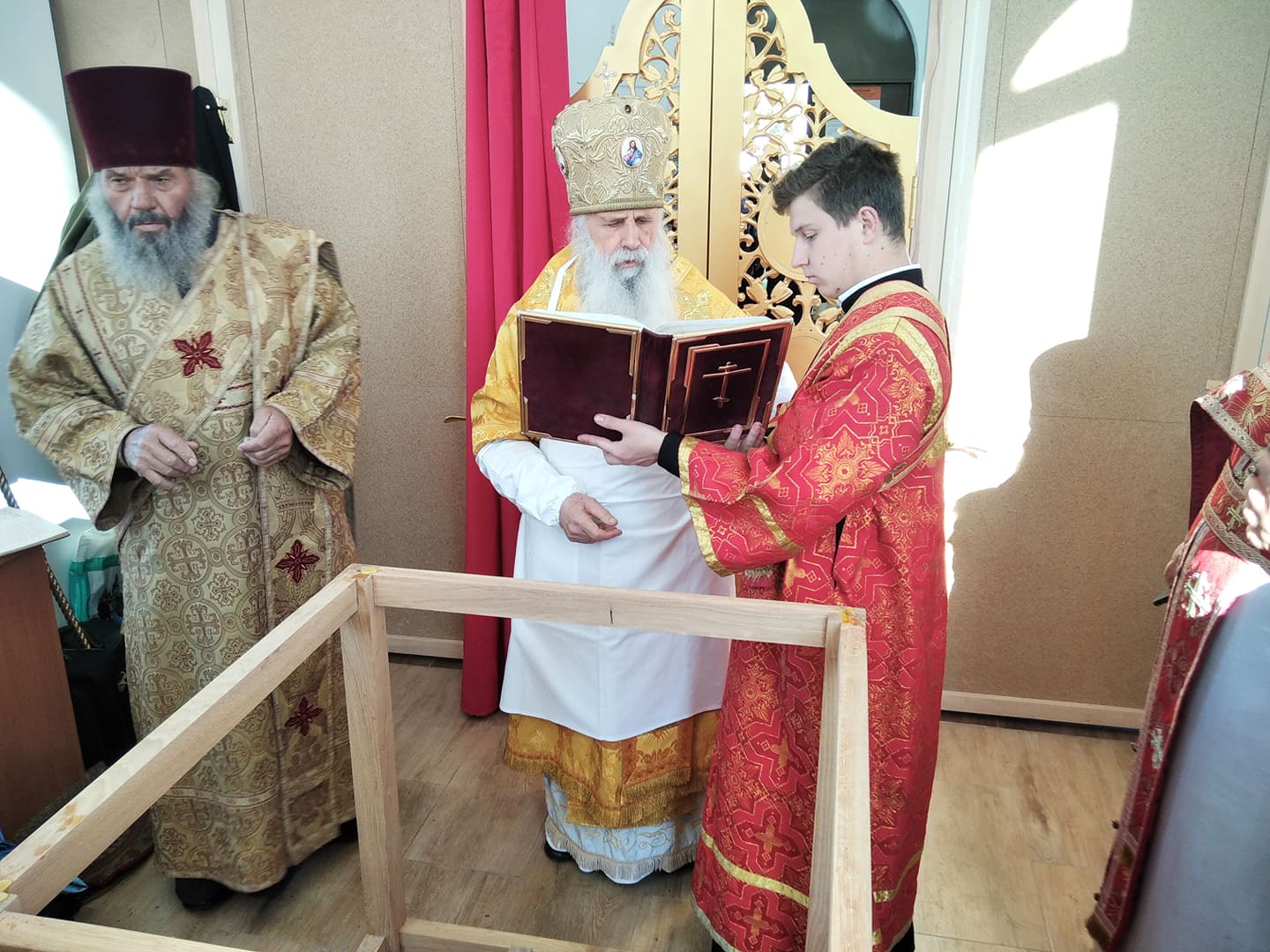 На першій в освяченому храмі літургії піднесли молитву про мир в Україні, єдності Церкви, а також про позбавлення від епідемії коронавірусу.