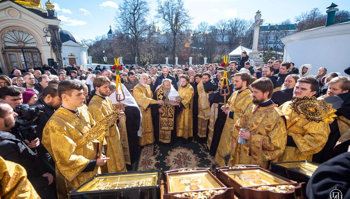 Богослужіння завершилося хресною ходою зі святими іконами до Ближніх печер Києво-Печерської лаври.