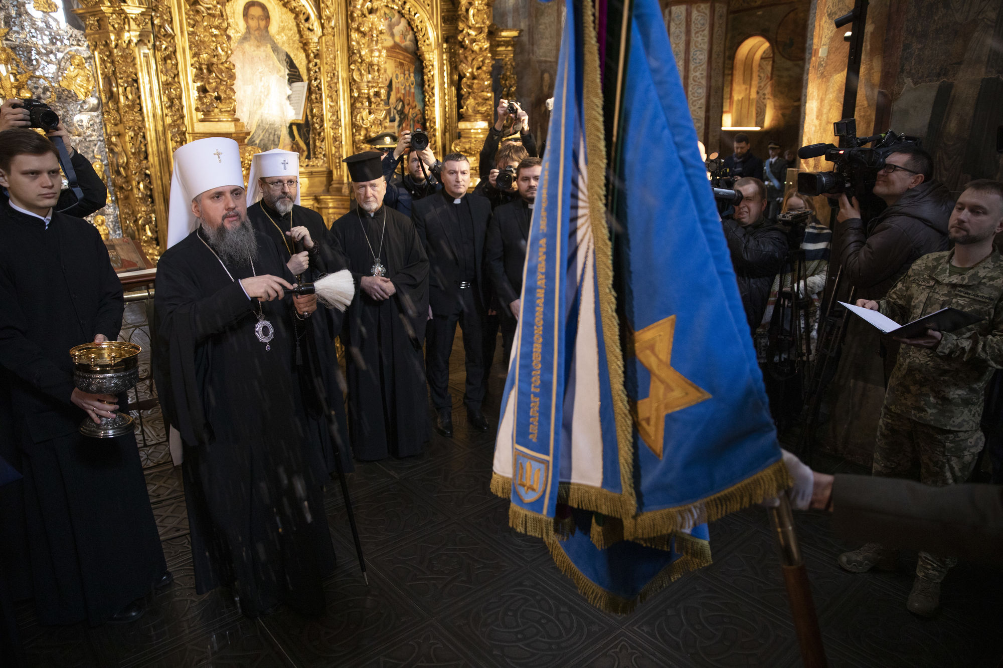 1 квітня 2023 року в соборі Святої Софії у Києві під час першого випуску військових капеланів голова ПЦУ Епіфаній Думенко з головою УГКЦ Святославом Шевчуком «освятили» військовий прапор служби військового капеланства ЗСУ, на якому зображено зірку Давида, повідомляє сайт ПЦУ.