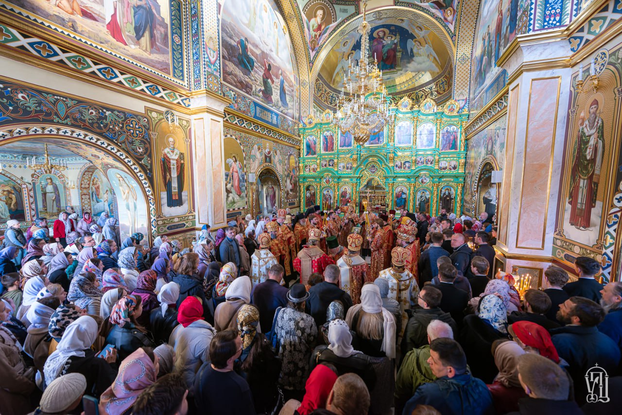 Предстоятелю УПЦ співслужили керуючий справами УПЦ митрополит Бориспільський і Броварський Антоній, єпископ Ірпінський Лавр, єпископ Бородянський Марк, духовенство обителі й гості у священному сані.