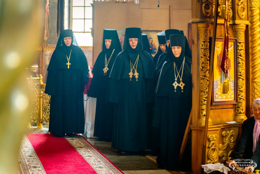 Перед початком Божественної літургії митрополита Луку в Соборному парку Черкас гостинно зустрічали ігумені та сестри монастирів Черкаської єпархії.