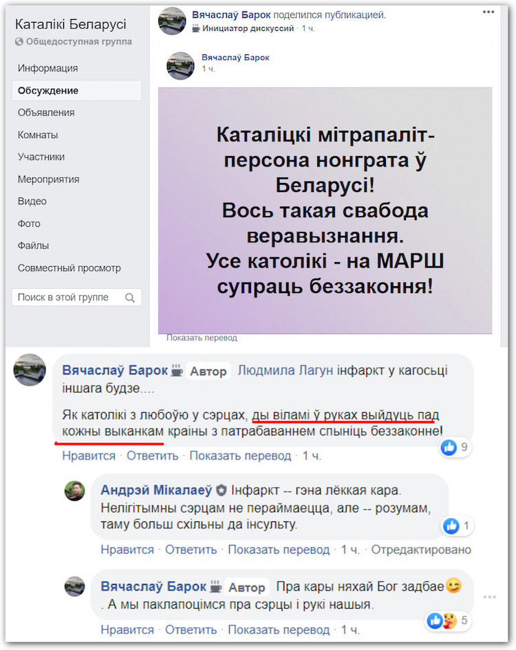 Православний блогер Олександр Вознесенський, який опублікував їхнє листування, вважає, що католики навмисне провокують білорусів на радикальні дії.