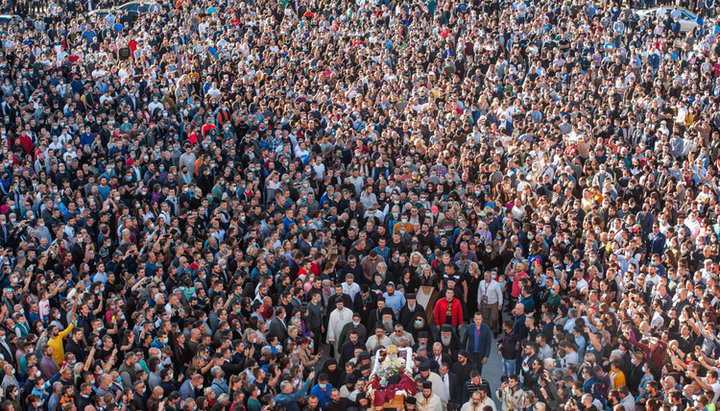 «Хоча колона з труною митрополита покинула Цетіньє о 13:00, в церкву Подгориці вона прибула близько 14:30, тому що люди стояли на колінах в очікуванні свого духовного пастиря і отця. <...> Труну з земними останками митрополита пронесли через тисячі людей і внесли в храм Воскресіння Христового, де віряни зможуть поклонитися своєму пастирю», – йдеться в повідомленні.