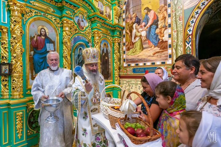 Після літургії Предстоятель прочитав особливі молитви з проханням благословити плоди нового врожаю. Архіпастир окропив святою водою паству, а також виноград і фрукти, які принесли віруючі.