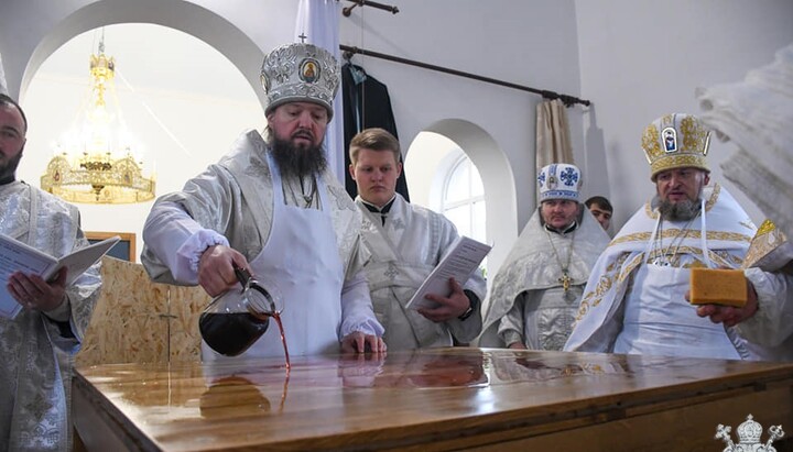Богослужіння очолив митрополит Житомирський і Новоград-Волинський Никодим, який звершив чин освячення престолу та храму цілком, – передає офіційний сайт Житомирської єпархії УПЦ.