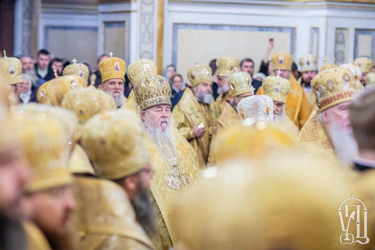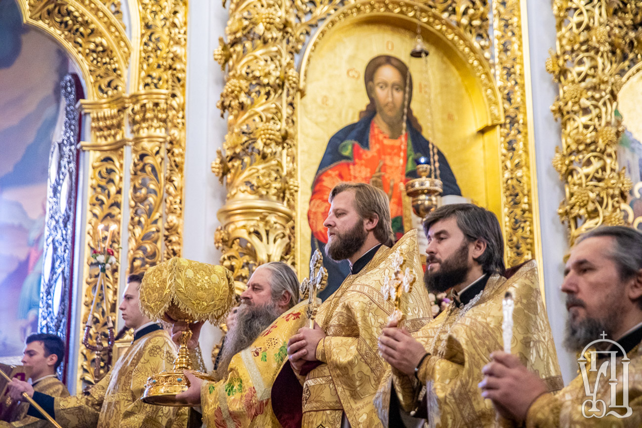Предстоятелю співслужили постійні члени Священного Синоду УПЦ митрополит Одеський і Ізмаїльський Агафангел, митрополит Хустський і Виноградівський Марк, голова Церковного суду УПЦ митрополит Кам'янець-Подільський і Городоцький Феодор, намісник Києво-Печерської обителі митрополит Вишгородський і Чорнобильський Павел, голова Відділу зовнішніх церковних зв'язків УПЦ митрополит Луганський і Алчевський Митрофан, керуючий справами УПЦ митрополит Бориспільський і Броварський Антоній, сонм архієреїв Української Православної Церкви, гості у священному сані та духовенство монастиря.