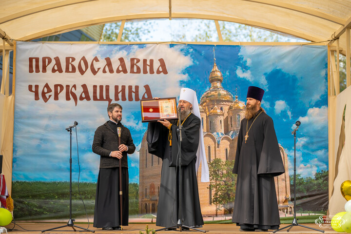 На запрошення митрополита Черкаського і Канівського Феодосія святкову літургію в Архангело-Михайлівському кафедральному соборі в обласному центрі очолив керуючий справами УПЦ митрополит Бориспільський і Броварський Антоній.
