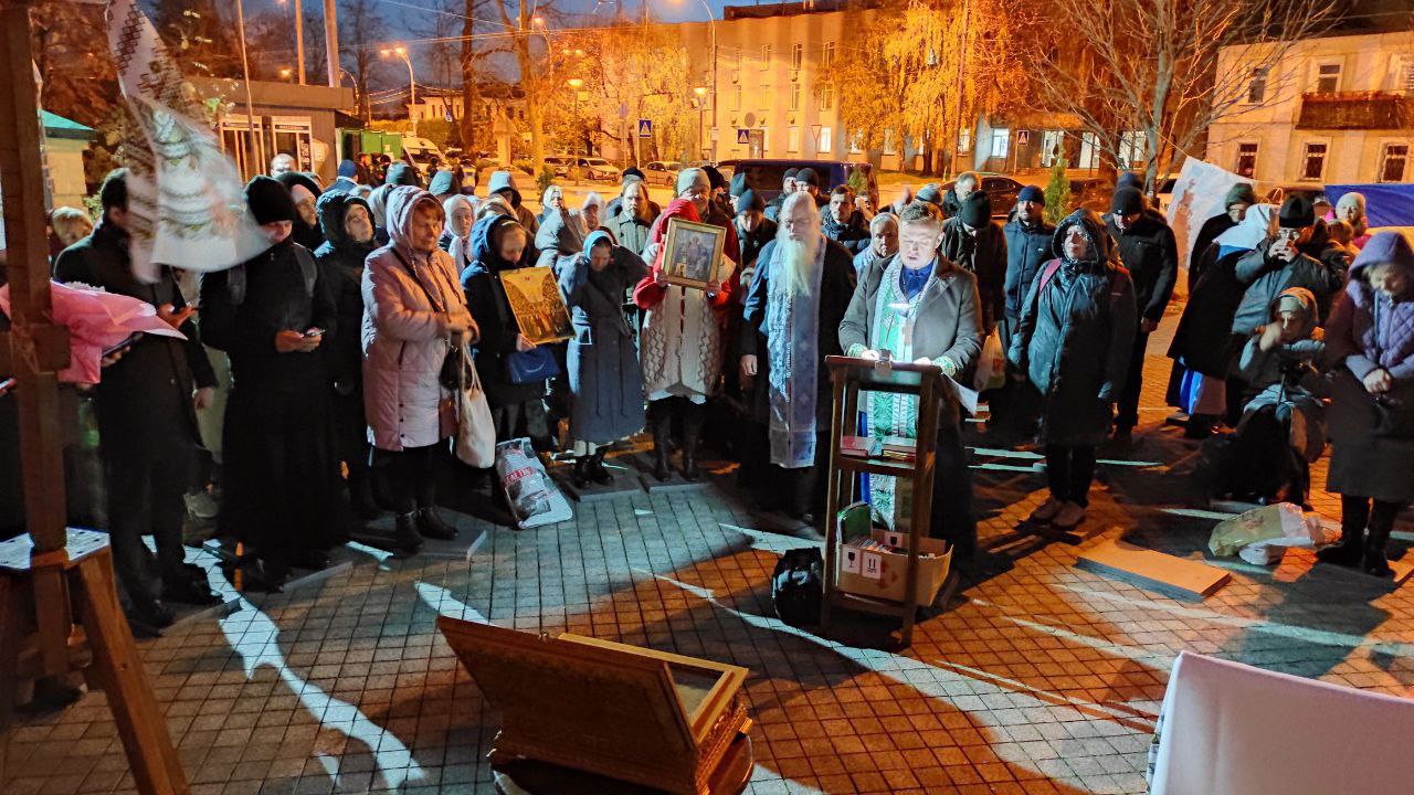 Далі ковчег із часткою мощей перенесли до храму на честь преподобного Сергія Радонезького, де проходить щоденне молитовне стояння віруючих УПЦ. Богослужіння відправляли настоятель Покровського храму села Нові Петрівці Київської області протоієрей Георгій Бойко, клірик столичного храму Усіх святих воїнів протоієрей Сергій Чертилін та інші священнослужителі.