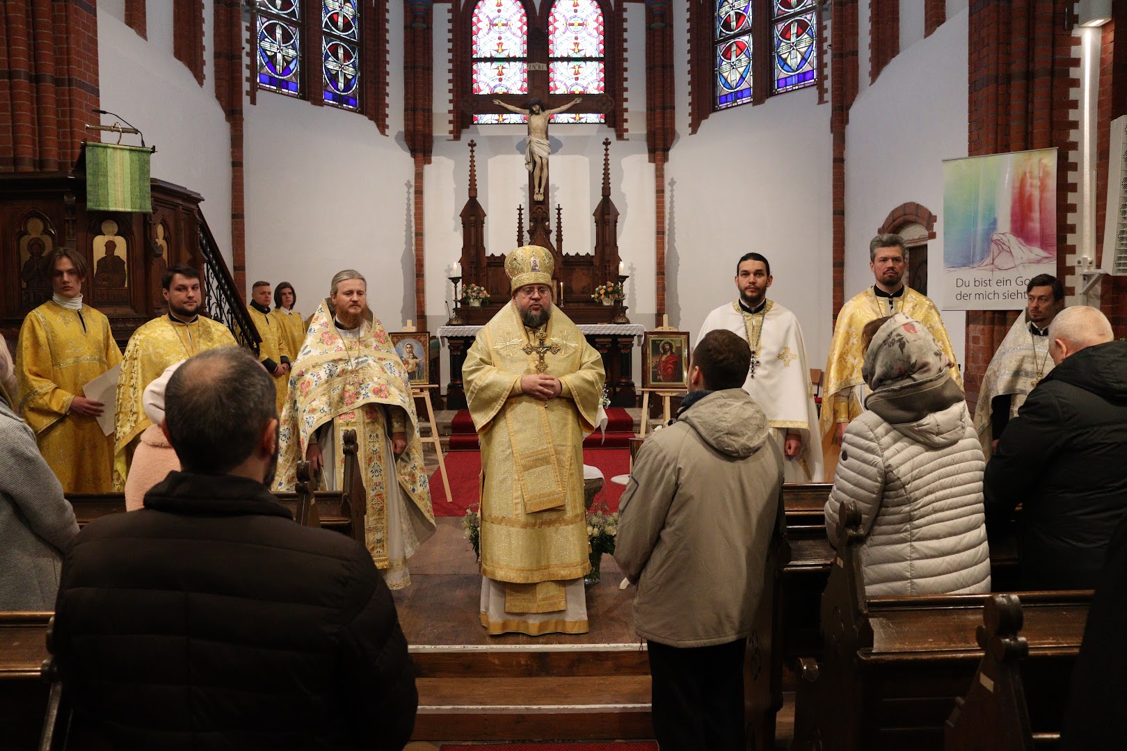 Архієрею співслужили благочинний Південного благочиння УПЦ у Німеччині протоієрей Максим Бойчура, настоятель парафії священник Іоанн Крись, а також настоятелі інших українських парафій у Німеччині.
