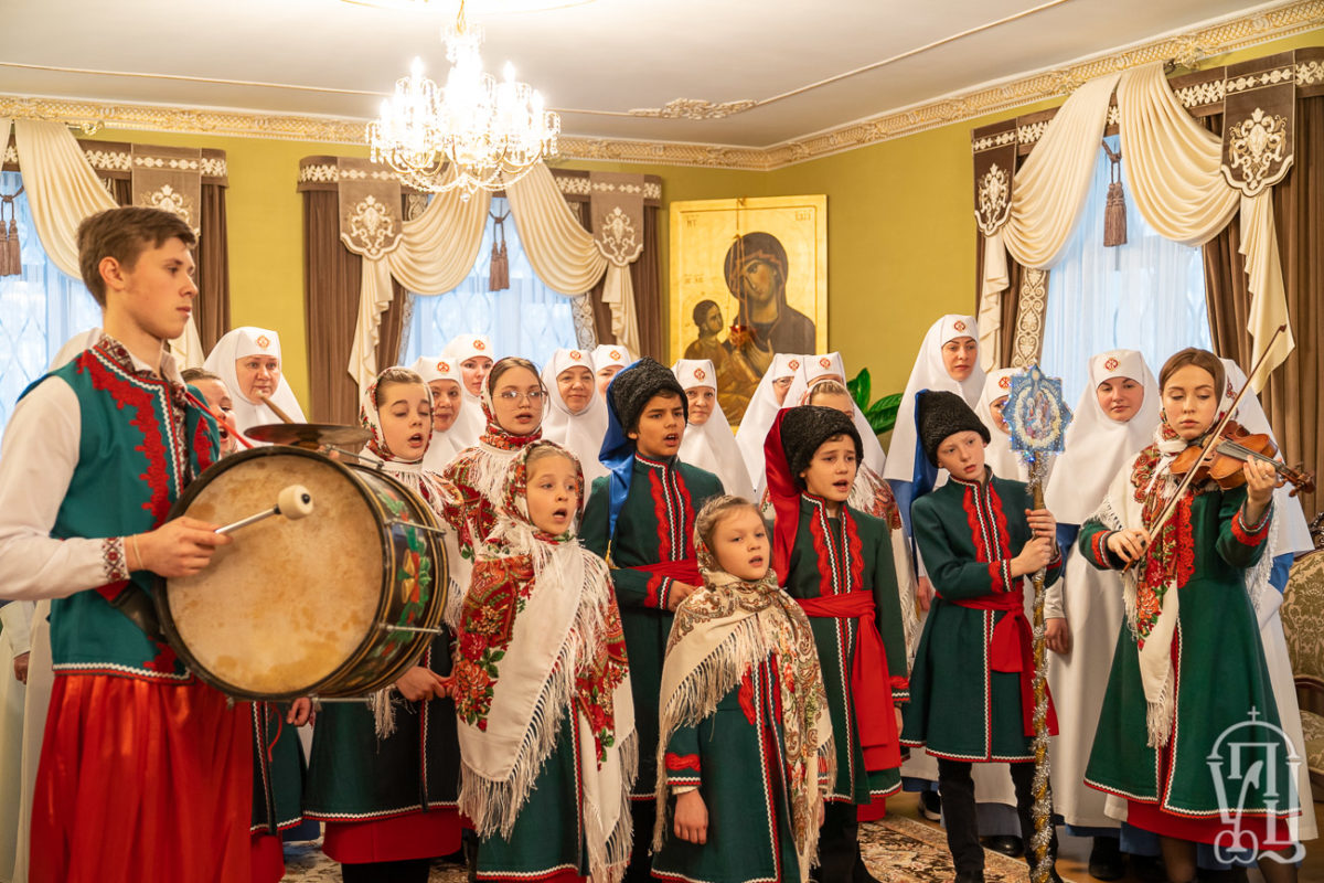 Отець Іоанн привітав Предстоятеля УПЦ з Різдвом Христовим, Новим роком і Богоявленням, а також розповів про те, як сестри і діти провели святкові дні. Сестри і вихованці обителі також привітали Предстоятеля зі святами і виконали для нього різдвяні колядки та духовні піснеспіви.
