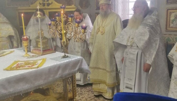 Під час Божественної Літургії ієрарх УПЦ звів настоятеля храму ієрея Аркадія в сан протоієрея. Наприкінці богослужіння владика Мелетій привітав усіх зі святом та нагородив парафіян храму архієрейськими грамотами, а старосту храму Василія Даниляка медаллю князя Володимира.