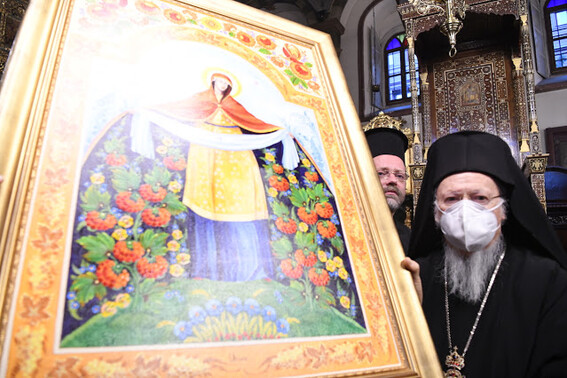 Нардеп Богдан Яременко вручив главі Фанару листи від Зеленського та Епіфанія, а також подарував ікону, написану в кольорах національного прапора.