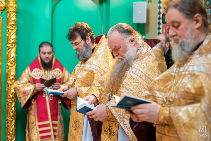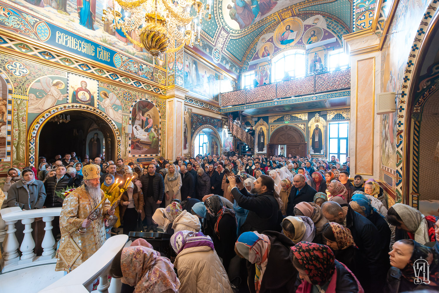 Предстоятелю співслужили керуючий справами УПЦ митрополит Бориспільський і Броварський Антоній, вікарії Київської єпархії та духовенство обителі.