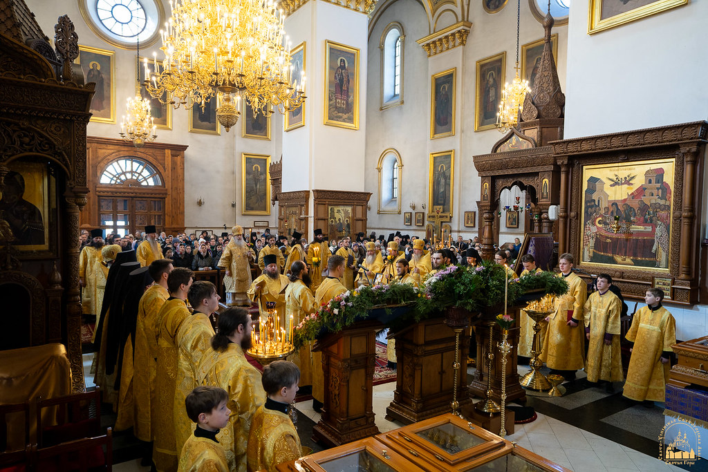 У Києво-Печерській лаврі перед початком літургії святителя Василія Великого Блаженніший Митрополит Київський і всієї України Онуфрій звершив особливе чинопослідування Неділі Торжества Православ'я перед іконами Спасителя і Божої Матері.