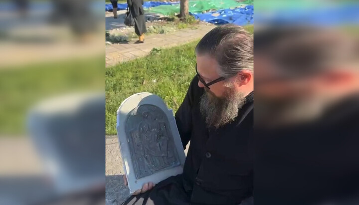 Намісник Десятинного монастиря Різдва Пресвятої Богородиці єпископ Боровський Климент розповів, що зі знесеного храму вціліла лише одна бронзова ікона, яка була вмурована у стіну.