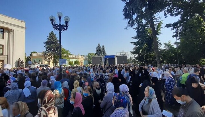 ГО «Миряни» і парафіяни Української Православної Церкви збираються біля стін парламенту для захисту своїх прав.
