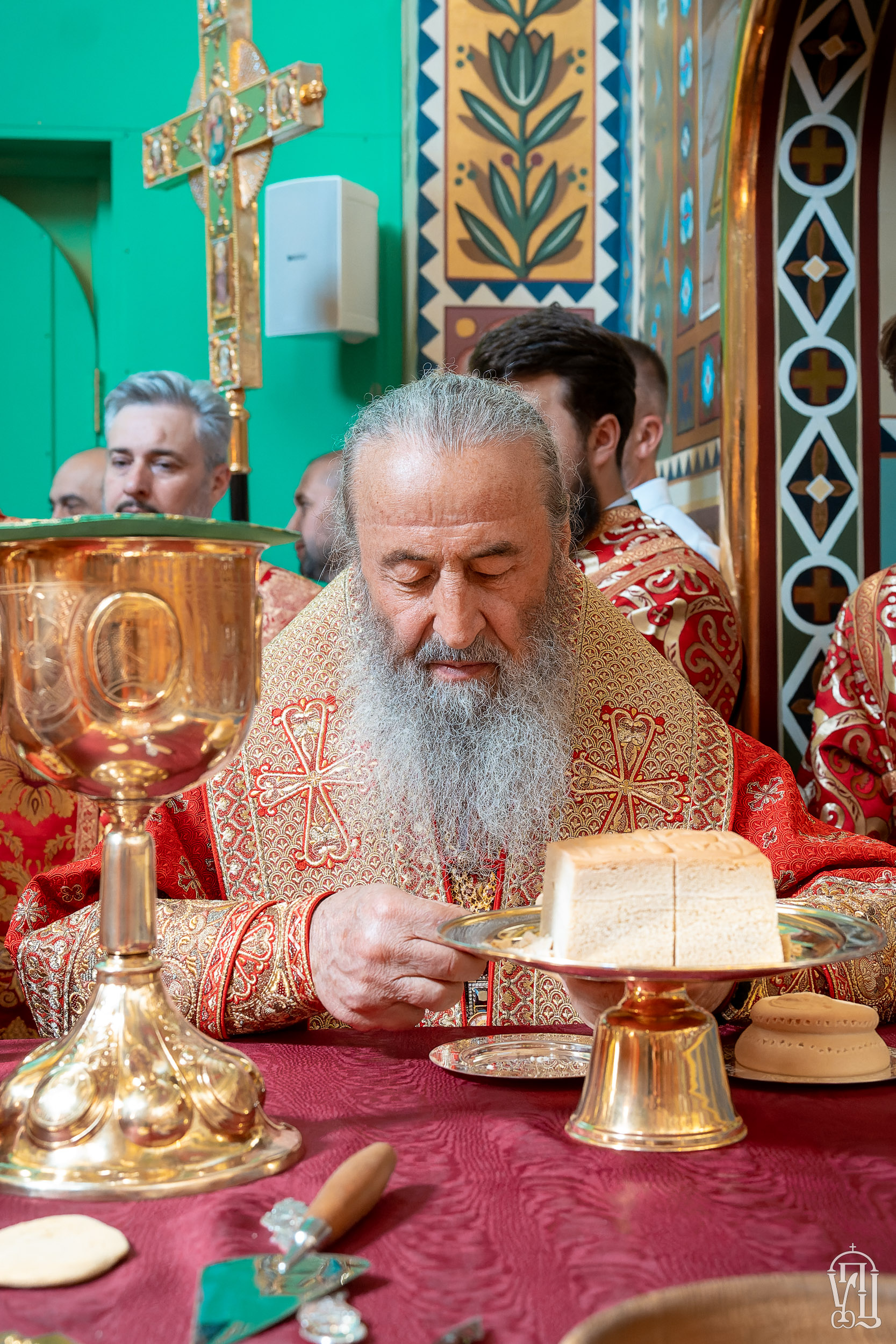 Під час богослужіння в храмі в ім'я преподобного Агапіта Печерського Предстоятелю співслужили керуючий справами УПЦ митрополит Бориспільський і Броварський Антоній, єпископ Ірпінський Лавр, єпископ Бородянський Марк, братія та гості монастиря на чолі з благочинним архімандритом Іларіоном.