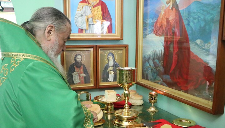 Ієрарх УПЦ з архіпастирським візитом відвідав церковну громаду і з нагоди престольного свята очолив у тимчасовому храмі Божественну літургію. Перед початком богослужіння владику Іринея привітали голова Слобожанської об’єднаної територіальної громади Іван Камінський і церковно-парафіяльний актив.