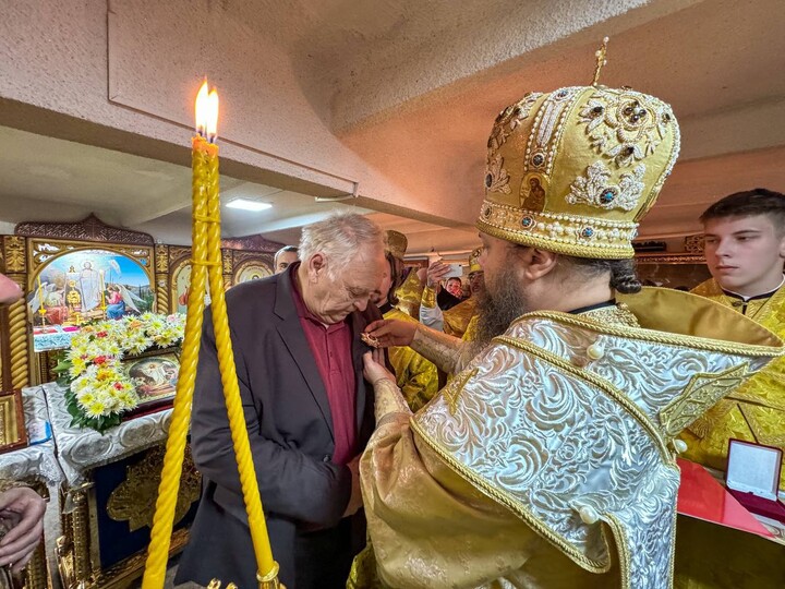 Освячення та Божественну літургію архієрей звершив у співслужінні духовенства з благословення митрополита Одеського та Ізмаїльського Агафангела.