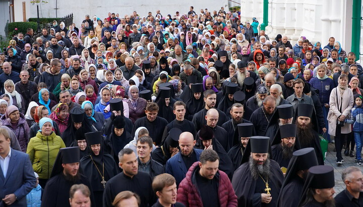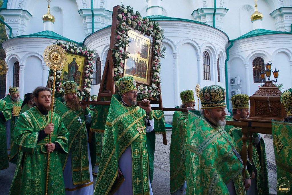 Після причастя всі присутні пройшли хресним ходом з іконами Божої Матері «Ігуменя Святих Гір» і Собору преподобних отців Святогірських. Під час хресного ходу не замовкали святогірські дзвони, сповіщаючи про особливе торжество в Святих Горах.