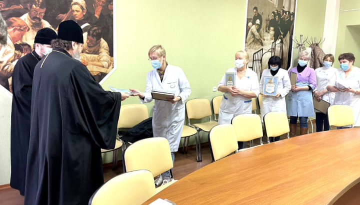 Потім архієрей відзначив співробітників лікарні церковними нагородами.