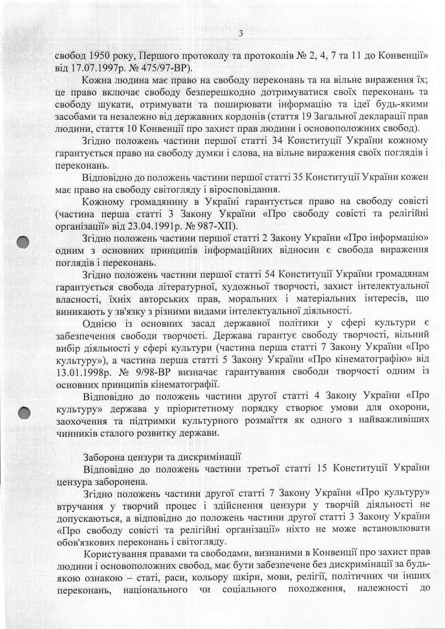 У Держкіно послалися на «дотримання рівних прав та можливостей, засноване на принципах різноманіття та рівності, свободи творчості, свободи думки, совісті та релігії, заборони цензури та дискримінації, які є основоположними принципами існування людства у сучасному світі, закріплені у законодавстві нашої країни та є важливими чинниками сталого розвитку держави».