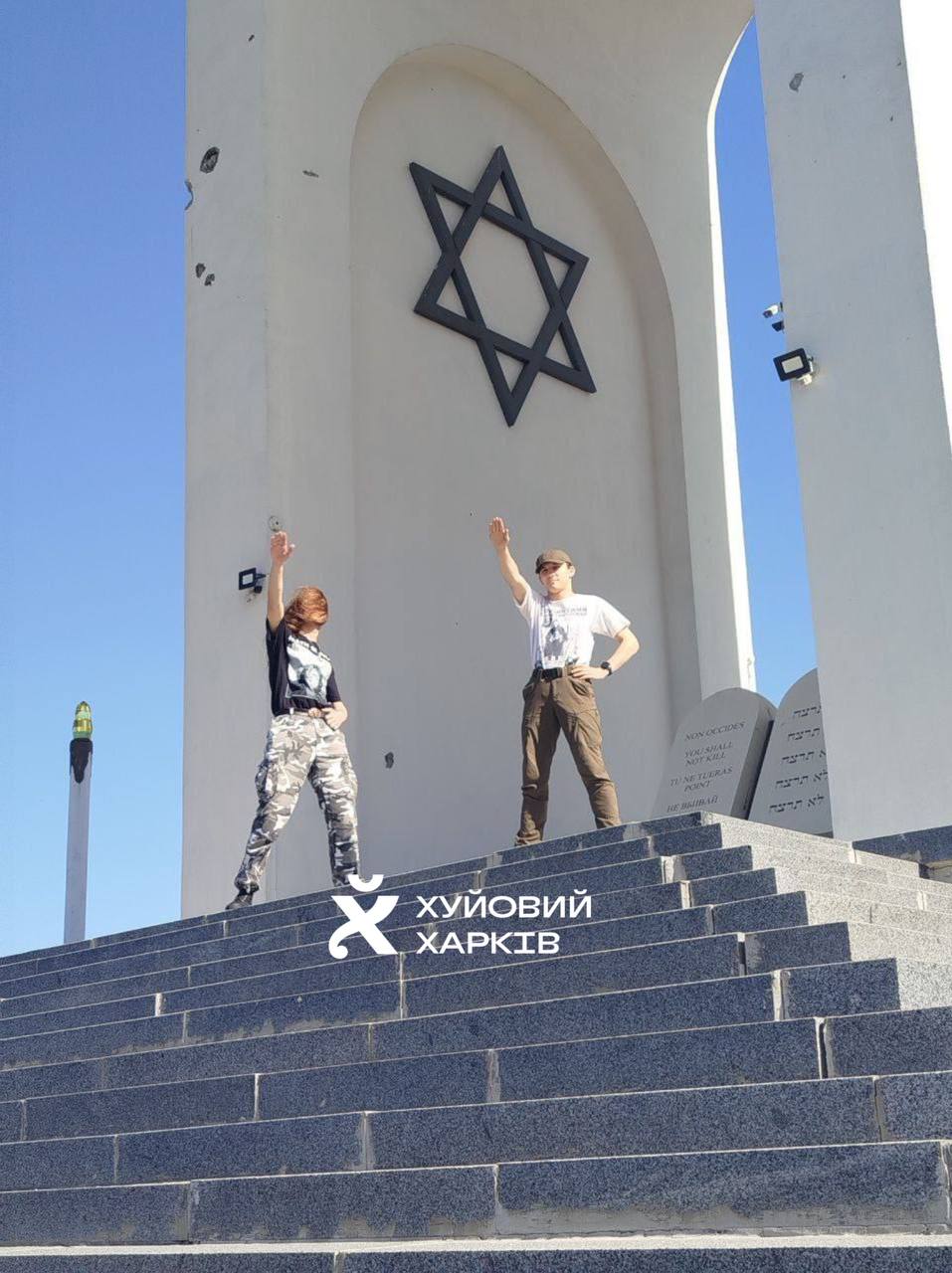 В Харкові хлопці зробили фото з зігою на фоні меморіалу жертвам Голокосту