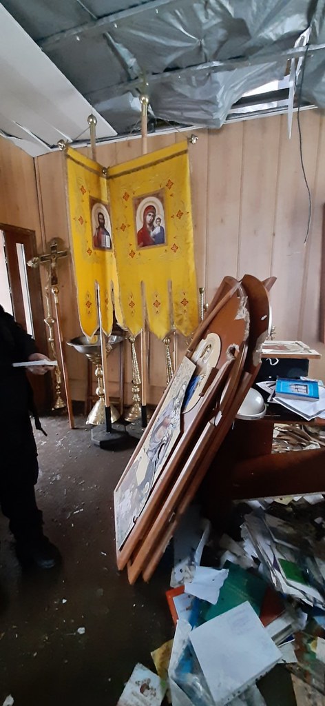 «Снаряд потрапив у вівтарну частину, було знищено святий Престол, Жертовник, іконостас. При цьому Царська брама виявилася практично неушкодженою, а під завалами вдалося знайти святий Антимінс, Євхаристичні посудини, інше богослужбове приладдя», – сказано в повідомленні.