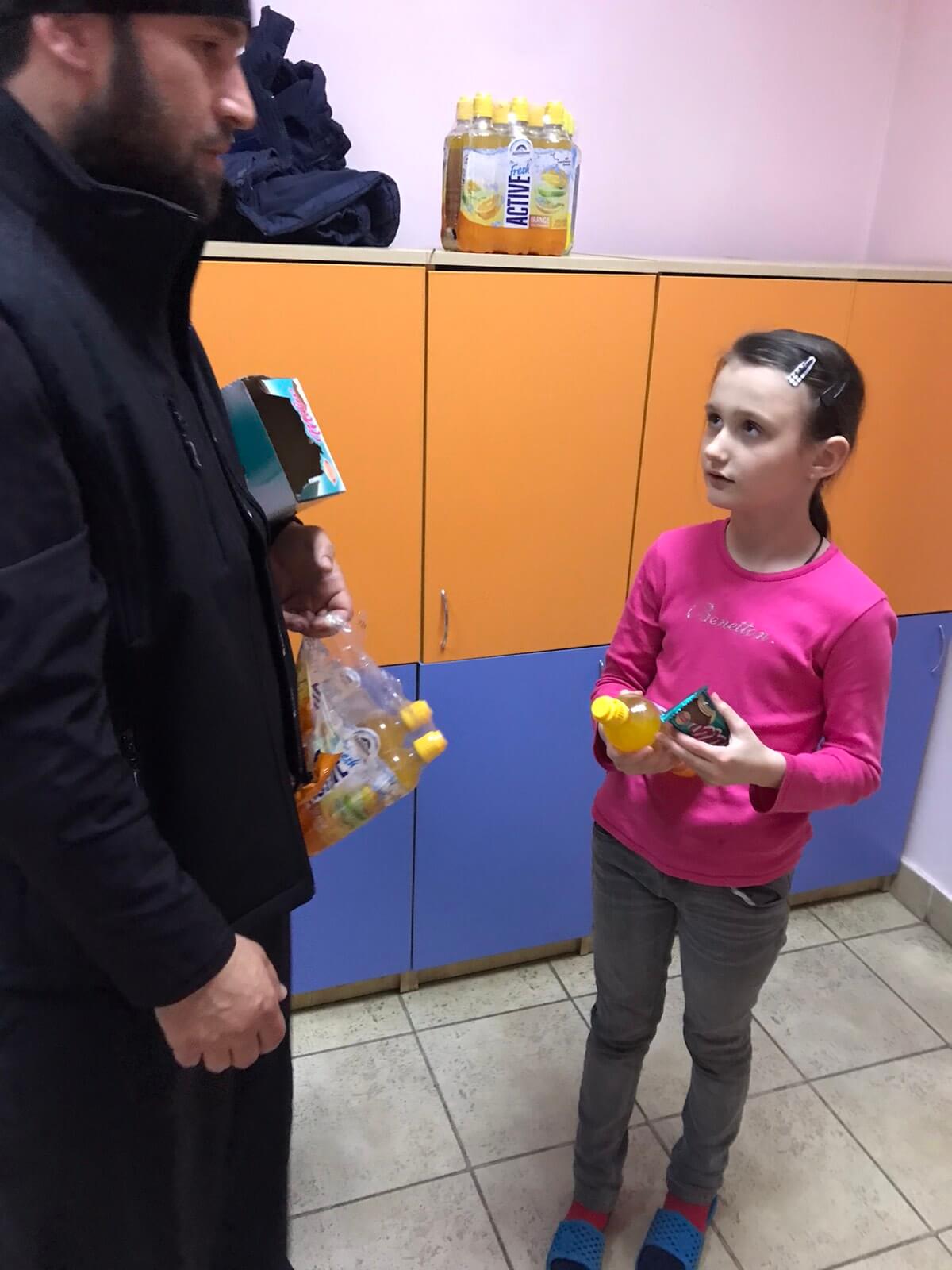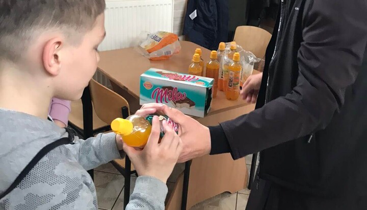 Настоятель храму передав біженцям із дітьми засоби гігієни, продукти харчування, одяг та інші необхідні речі.