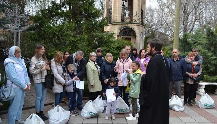 15 сімей переселенців із Донецької, Луганської, Харківської та Херсонської областей прийшли до собору, щоб познайомитися та поспілкуватися зі священником та психологом. Для дітей парафіяни провели майстер-клас із виготовлення браслетів, а потім роздали гостям продуктові набори. Переселенці отримали крупи, борошно, олію, яйця, фрукти, солодощі та інші продукти.