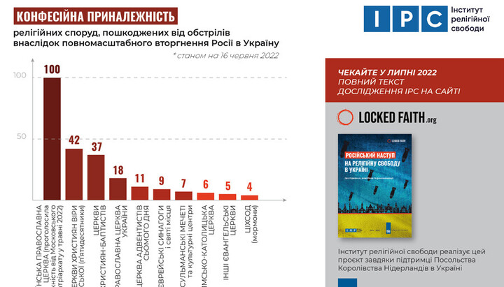За даними українського Інституту релігійної свободи, за час війни на території України пошкоджено та зруйновано понад 240 релігійних споруд.