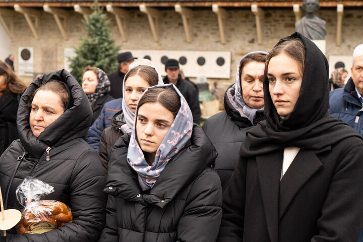 На території монастиря були встановлені стенди з фотографіями загиблих, які перетворили монастирський двір на імпровізований меморіал. Рідні та близькі воїнів зібралися на молитву, щоб вшанувати пам'ять тих, хто не повернувся з війни.