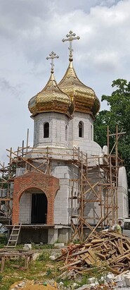 Хрести були освячені для двох куполів на храм, що будується на честь апостола Андрія Первозванного.