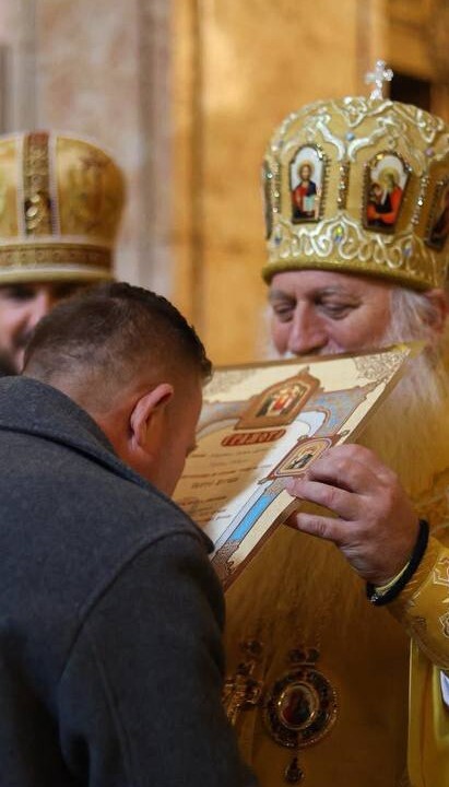 На Малому вході за благословенням Блаженнішого Митрополита Онуфрія настоятель храму був нагороджений правом носіння митри. Після богослужіння єпископ Веніамін нагородив грамотами Предстоятеля парафіян храму за внесок у розвиток приходу.