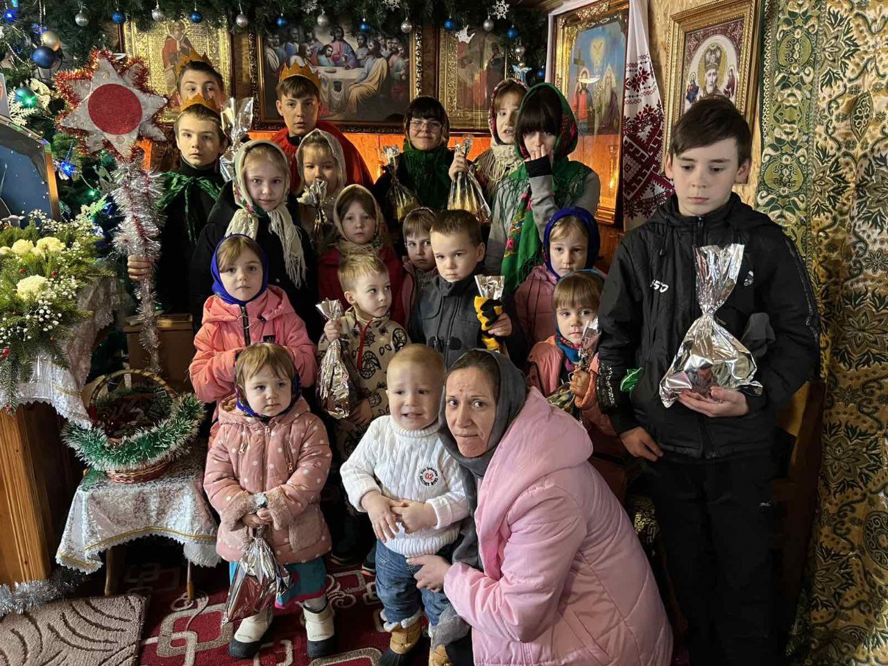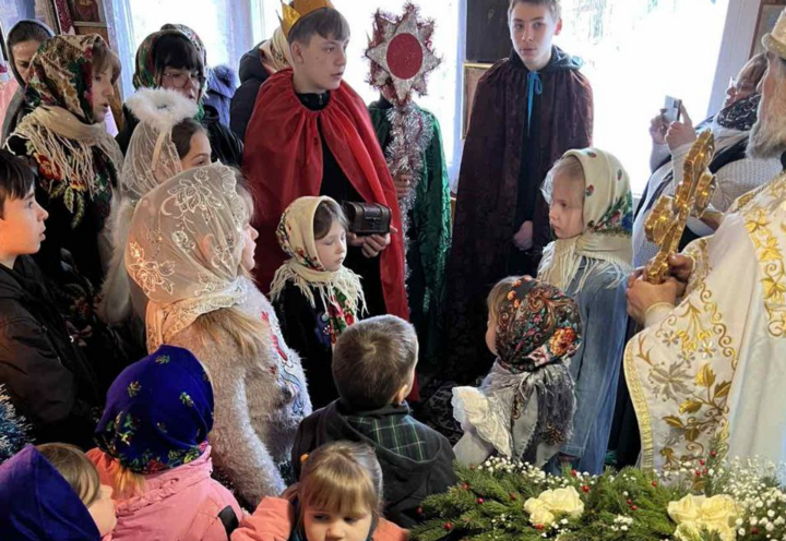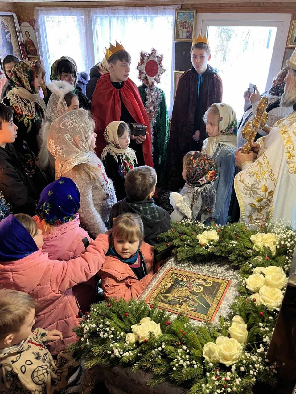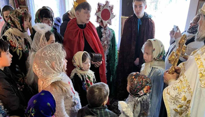 Релігійна громада помолилася за святковою Божественною літургією, після чого юні парафіяни прославили Новонародженого Христа колядками та постановкою. Найменші отримали солодкі подарунки.