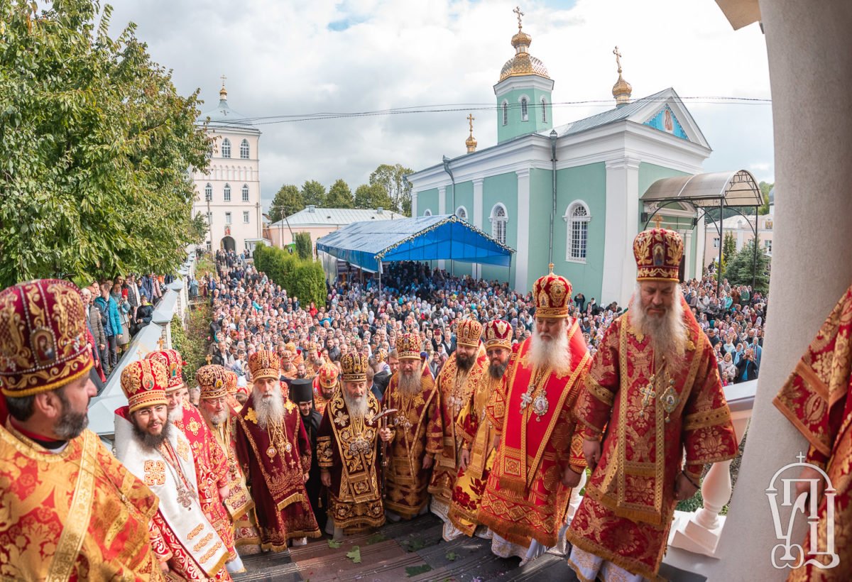 Предстоятелю УПЦ співслужили керуючий справами УПЦ митрополит Бориспільський та Броварський Антоній, митрополит Тернопільський та Кременецький Сергій, митрополит Поліський та Сарненський Анатолій, митрополит Почаївський Володимир, митрополит Житомирський та Новоград-Волинський Никодим, архієпископ Городницький Олександр, архієпископ Городницький Олександр, архієпископ Фастівський Даміан, архієпископ Шепетівський і Славутський Євсевій, архієпископ Хотинський Веніамін, архієпископ Рівненський та Острозький Пимен, єпископ Бородянський Марк, духовенство монастиря, єпархії та гості у священному сані.