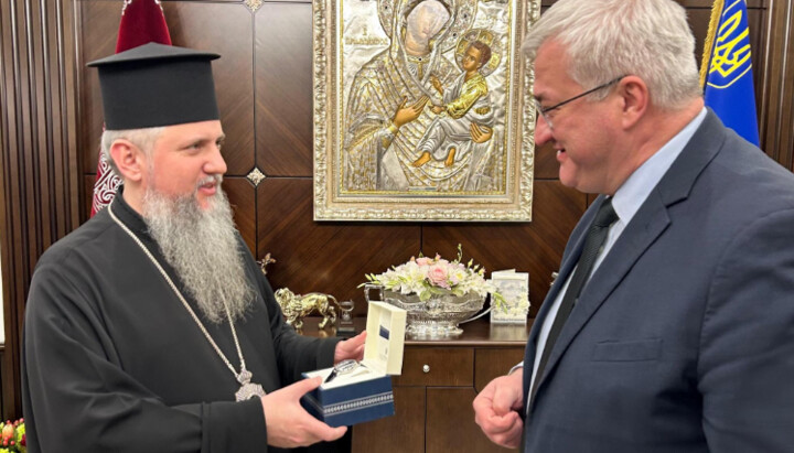 Сибіга привітав Епіфанія із сьомою річницею інтронізації та днем народження. Міністр подарував Сергію Думенку цінний годинник. Чи був це особистий презент Сибіги, чи він куплений за бюджетні кошти, міністр не уточнив. Він підкреслив, що як посол у Туреччині брав участь у процесі отримання Томосу, і розповів, що в його кабінеті зберігається точна копія документа.