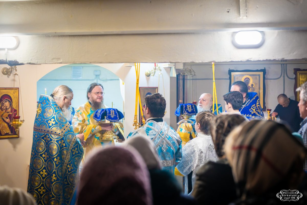 Божественну літургію очолив керуючий Черкаською єпархією митрополит Черкаський і Канівський Феодосій. Йому співслужили секретар єпархії протоієрей Василій Вознюк, настоятель парафії протоієрей Євгеній Буркацький та духовенство міста. За богослужінням була піднесена сугуба молитва про Церкву, що зазнає переслідувань, після чого архіпастир звернувся до вірних зі словами підтримки.